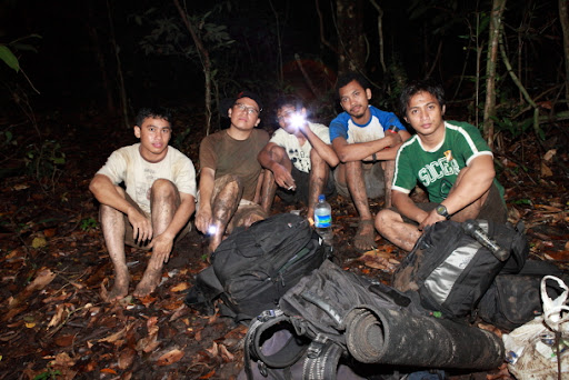 Gelap dan hanya bercahayakan senter kecil dan becek, sekiranya itulah kondisi perjalanan yang kami lakukan, tapi suatu ketika tiba2 kami menemukan jalan yang enak dilalui… tp ini adalah pertanda buruk buat kami, dan… iya… kami tersesat… wkwkwkwkwk… ditengah kebingunan, beberapa dari kami sempat berpencar mencari jalan yang benar, dan setelah itu kembali ke titik point tempat kami tersesat untuk melakukan perjalanan ke jalan yang benar, ke jalan yang pernah dilalui manusia yang lain hehehe… tp yang unik dari kami, sudah tersesat masih saja sempat untuk berfoto narsis ditengah kegelapan hehehe…